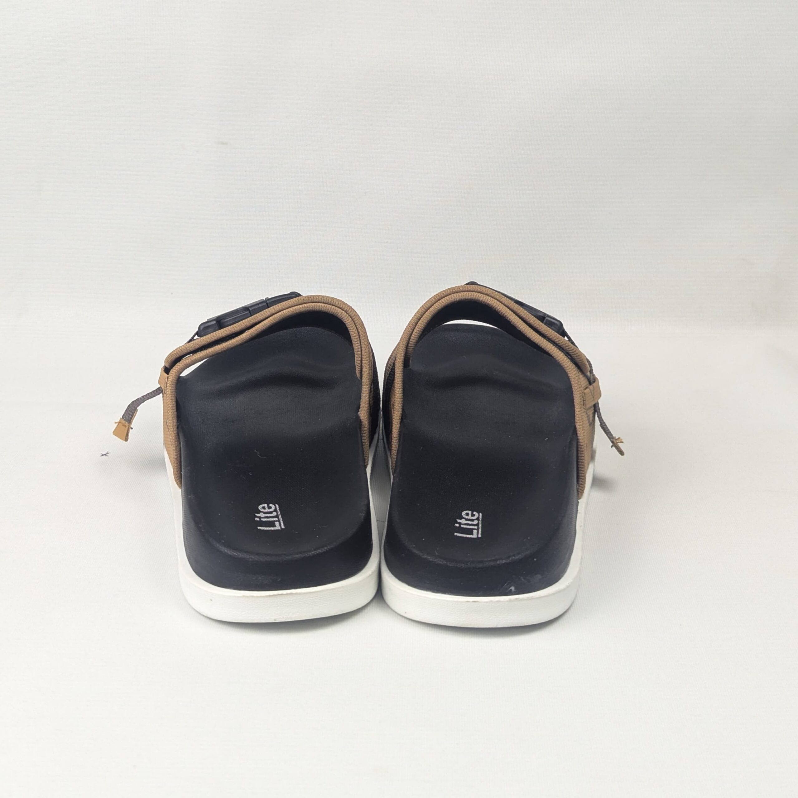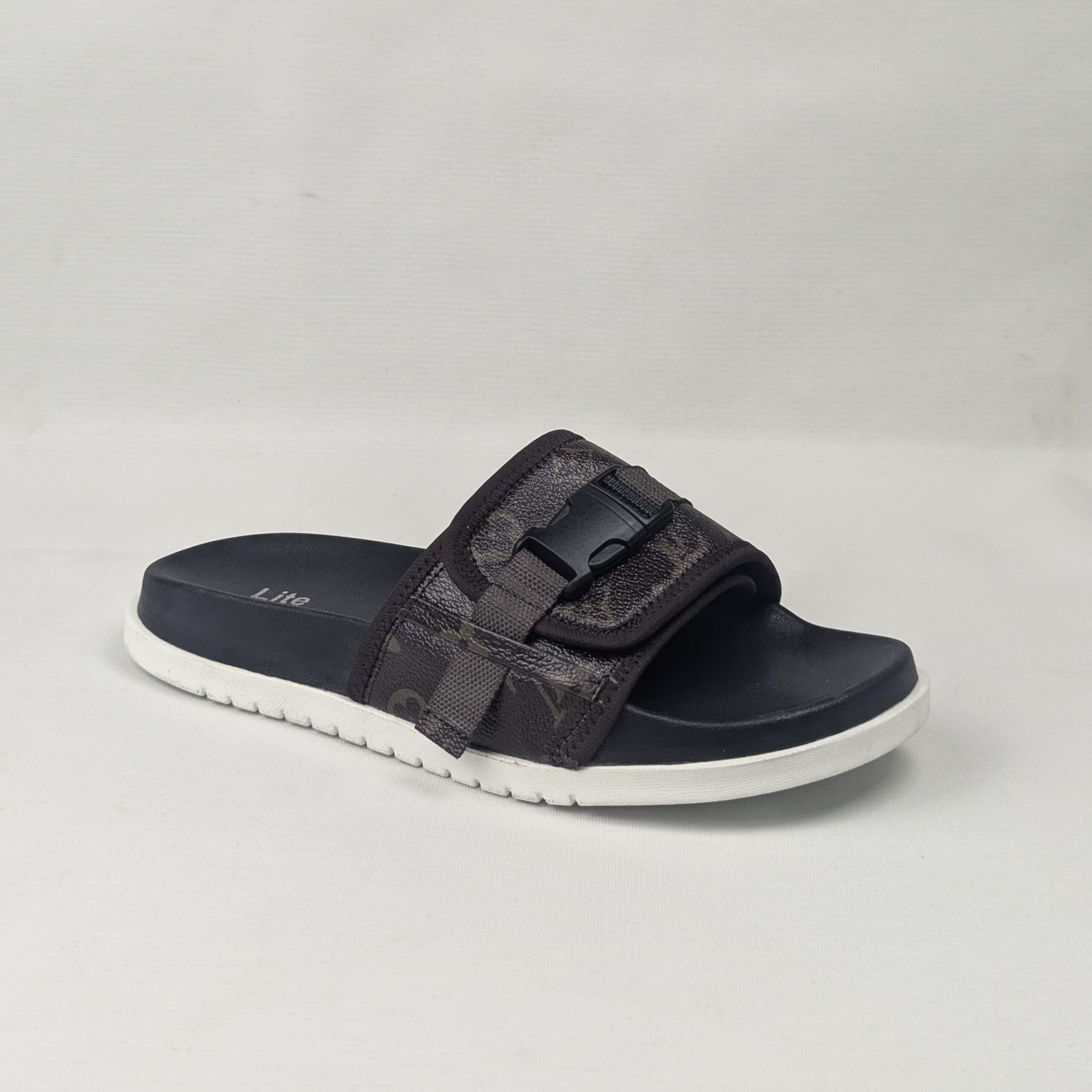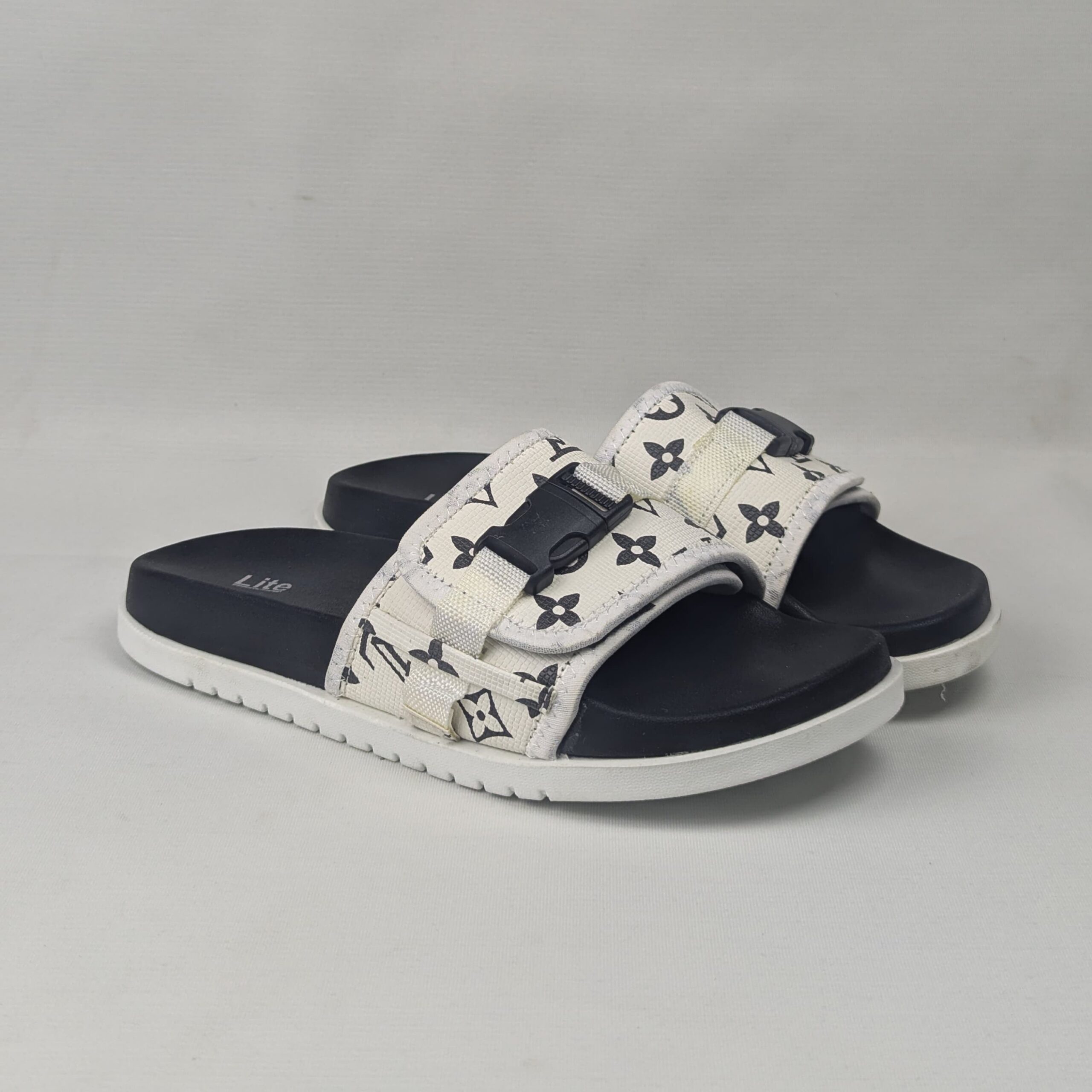 Step out in casual comfort and style with these modern slide sandals. Featuring an eye-catching monogram-style print on the strap, these slides are designed for everyday wear. The wide strap is equipped with an adjustable quick-release buckle and hook and loop (Velcro-style) closure, ensuring a secure and customized fit. Built on the lightweight ‘Lite’ sole, they offer a comfortable and flexible feel, perfect for the beach, poolside, or relaxed streetwear. Available in a range of stylish color combinations.